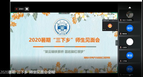 “三下乡”支教团开展了集合以来的第一次线上见面会。会议由副队长郑昊同学主持,学生家长受邀出席会议,指导老师文珷强调了这是湖大91官网