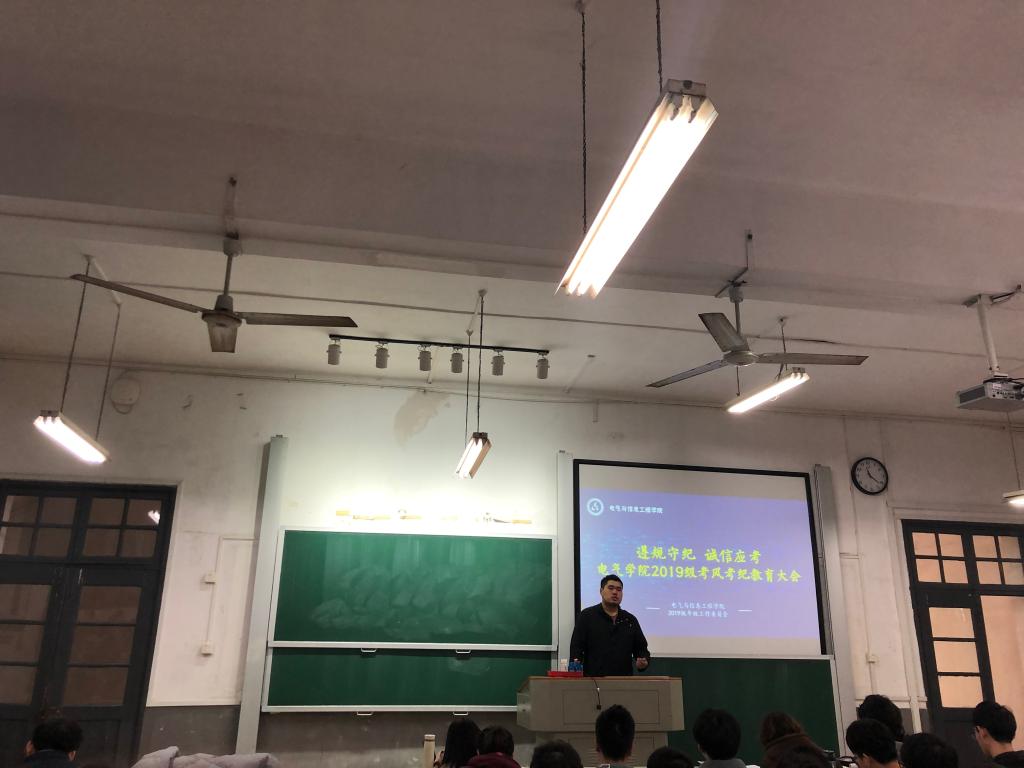 本科2019级考风考纪暨诚信教育大会在东楼104教室召开,本次会议由2019级辅导员马越主讲,年级委员会成员沈婷婷主持,全体2019级学生参加。
