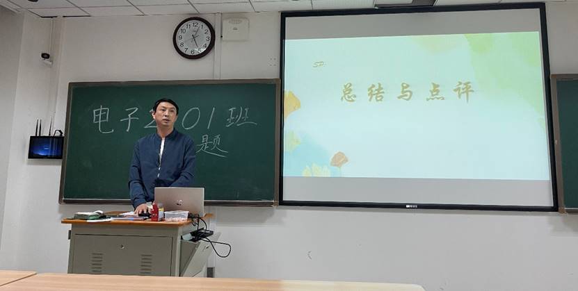 党委副书记陈军、本科2021级辅导员金晶老师、班主任陶明老师和电子2101班学助刘焕瑶、庄祖亮参加。本次班会由班长邓雪健主持,全体同学参与。