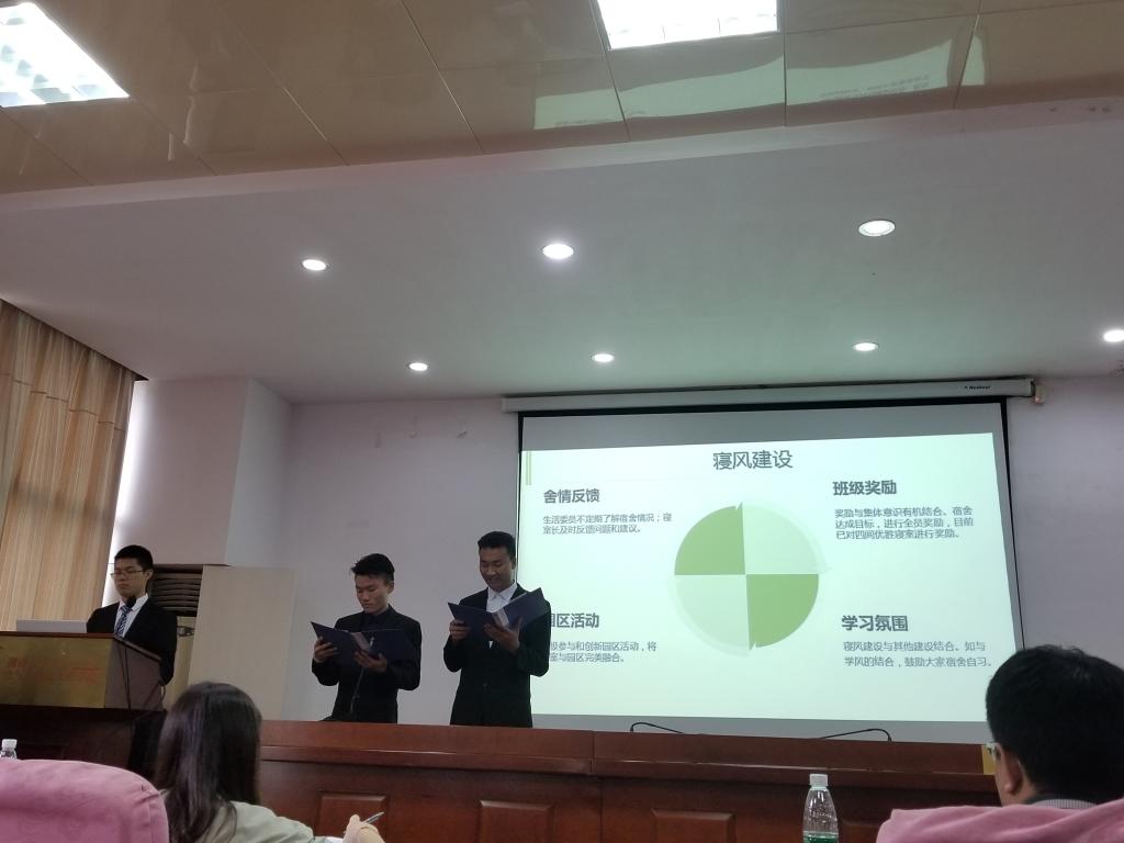 为了准备答辩,班长、宣委和学委提前一天晚上进行准备,将稿子改了一遍又一遍,PPT优化了一次又一次,力求做到极致。当晚接近十二点的时候,试答辩了多次之后,答辩小组才回寝休息。