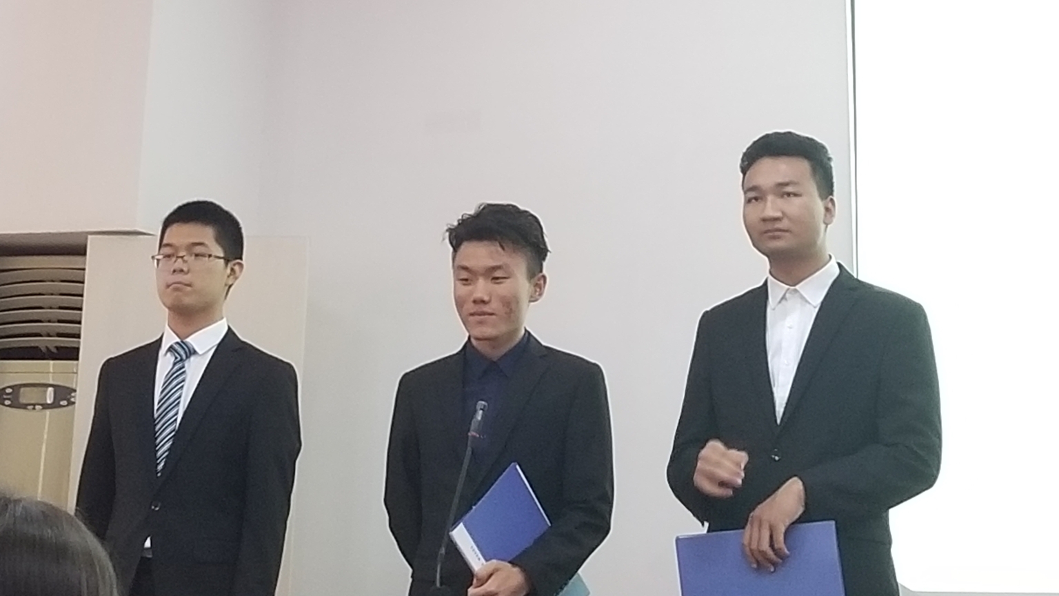 优秀班集体与五星班集体答辩,参与答辩的同学有电自1701班班长张之亮、宣传委员韩辉、学习委员姬欣宇。