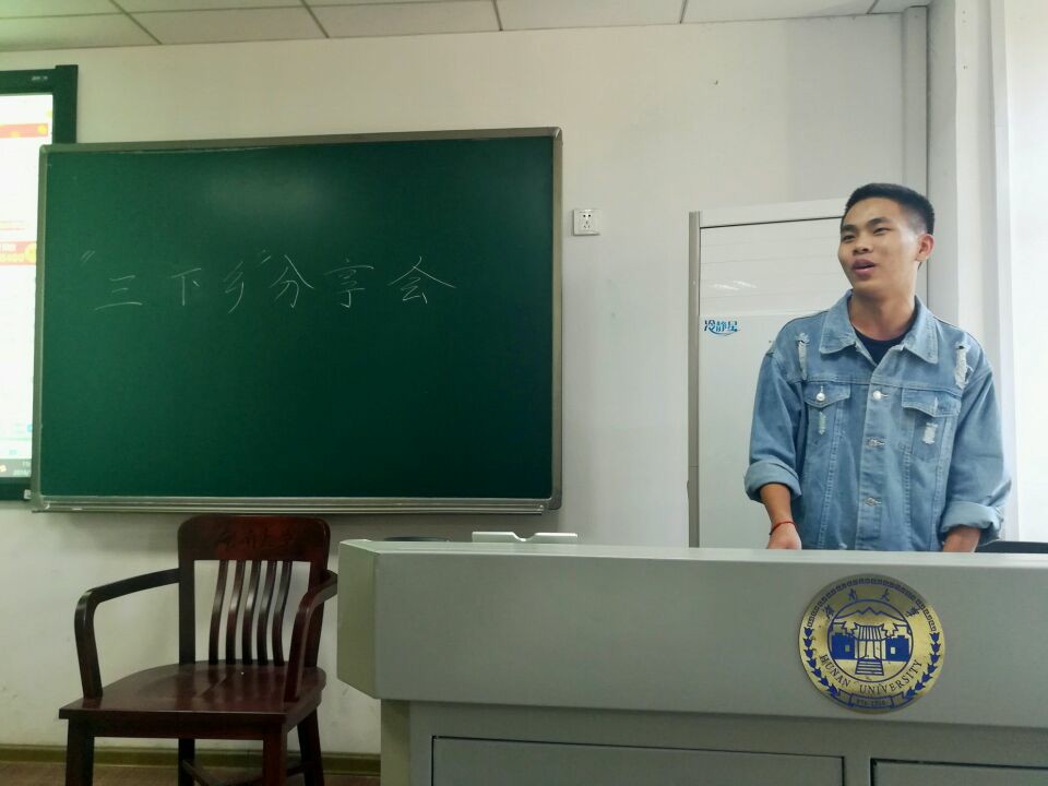 班长丁常伟听完之后感触很深,虽然他没有参加学校组织的“三下乡”活动,但他参加了“贵州大学生联合发展协会”举办的支教活动,并给我们分享了视频和感悟。