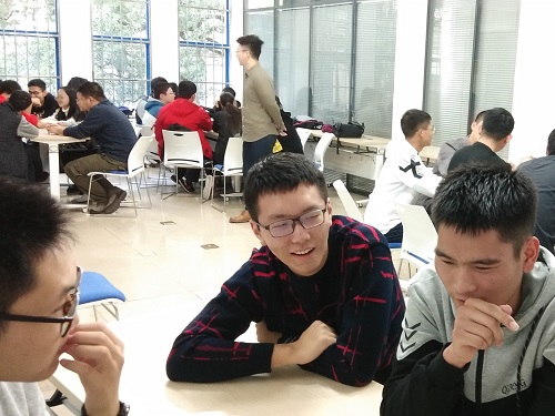 接下来同学们被分成了四个小组,小组的同学们相互介绍自己的家乡,爱好,优缺点等等,并进行了小组间记忆力的比拼,这项活动再一次加强了同学们之间的熟悉感,使得测控一班的凝聚力更强了。然后同学们进行了小组讨论,设计出了队徽,队名,队口号,同学们独特的思路和富有创造力的设计也为这次的活动增添了更多亮丽的的色彩。