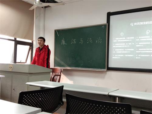十二月一日下午两点半,为让大家进一步了解消防安全相关知识,警惕身边的火灾隐患,,自动化1801班召开了“消防安全教育”主题班会。本次班会由主要团支书赵嘉荣同学策划和主持,全班无特殊情况的同学均前往参加班会。