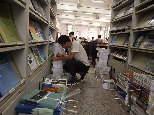 而前往四楼的同学的任务则完全不同,他们需要做的是将乱序的书籍重新整理,不需要体力,但是需要绝对的细心和耐心。时间飞快,过了一个小时,志愿者们仍在专心整理顺序,直到老师前来表示已经结束之后,同学们才将手里的工作停了下来。