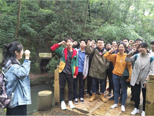 上午十一点,电自1706班的同学们走出教室,一起前往本次活动的目的地——第九战区司令部战时指挥部和战壕。共青团员们分为两组,一组由党欣玥带领前往战壕,二组由宣传委员母春然带领前往第九战区司令部战时指挥部。