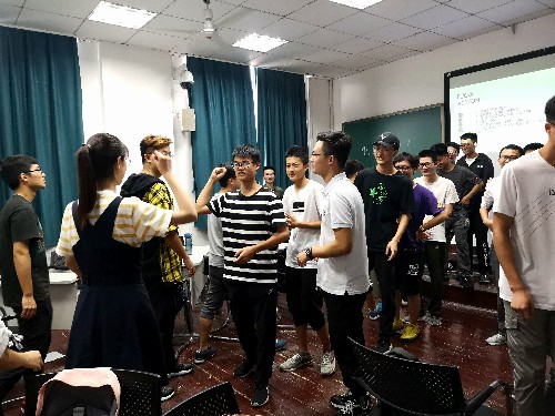 接下来是一次特别的破冰活动。由于下个学期本班级将转入三位新同学,其中的两位女生今天也来到了现场,大家用报数的方式随机分好了四个小组,并组内选出小组长,同时为自己小组想出队名和口号。然后副班长给出一个“角色救援”的题目:私人飞机坠落在荒岛上,只有6人存活,他们分别是孕妇、发明家、医学家、宇航员、生态学家和流浪汉。这时逃生工具只有一个只能容纳人的橡皮气球吊篮,没有水和食物。针对由谁乘气球先行离岛去求援的问题,大家先依次总结上一个同学的想法,然后发表个人见解,所有人都发言完毕后,各小组在组长的引领下展开了激烈的自由辩论,此时气氛被推向了高潮,组内统一意见后各组派出代表陈述本小组的意见和理由。之后副班长解释了选择这个题目的出发点,并强调了聆听的重要性。活动后询问几位同学的感受,大家都说感受到了气氛的活跃并表示受益匪浅。
