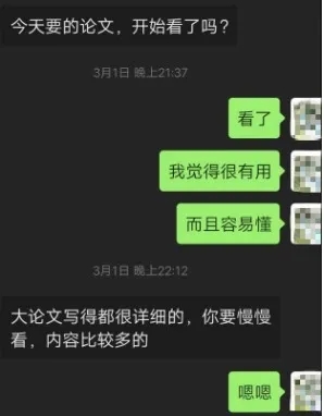 差不多每天,学长都会通过微信、电话来问你现阶段做了什么工作、遇到了什么工作瓶颈,会告诉你解决的思路或者提供相应的论文进行参考。