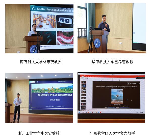 论坛会上,来自华中科技大学、浙江大学、上海交通大学、北京航空航天大学、北京理工大学、华南理工大学、合肥工业大学等高校12位优秀科技工作者分别做主题报告,围绕机器人与智能系统的信息感知、定位导航、驱动控制、决策优化等关键技术进行研讨。