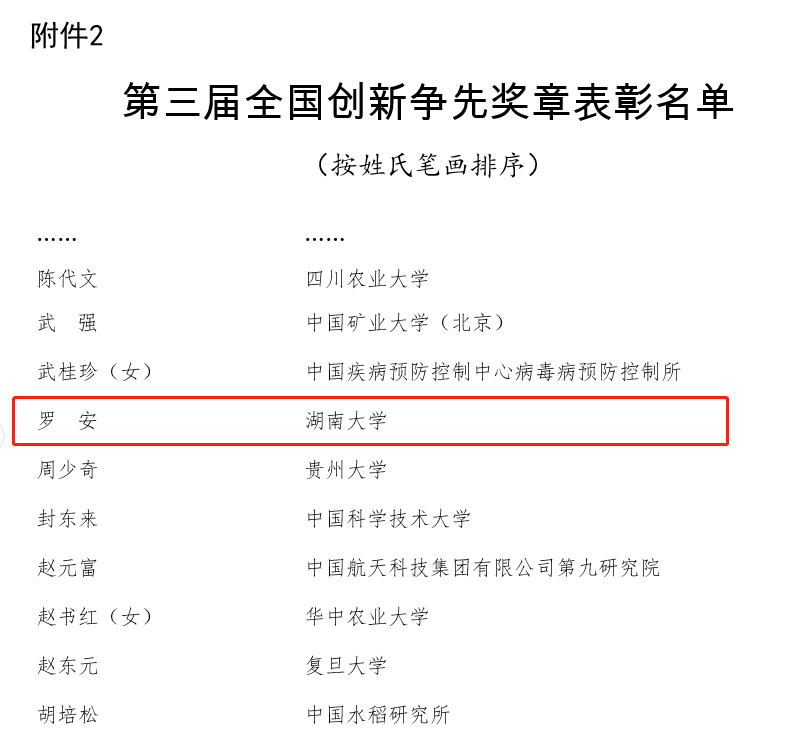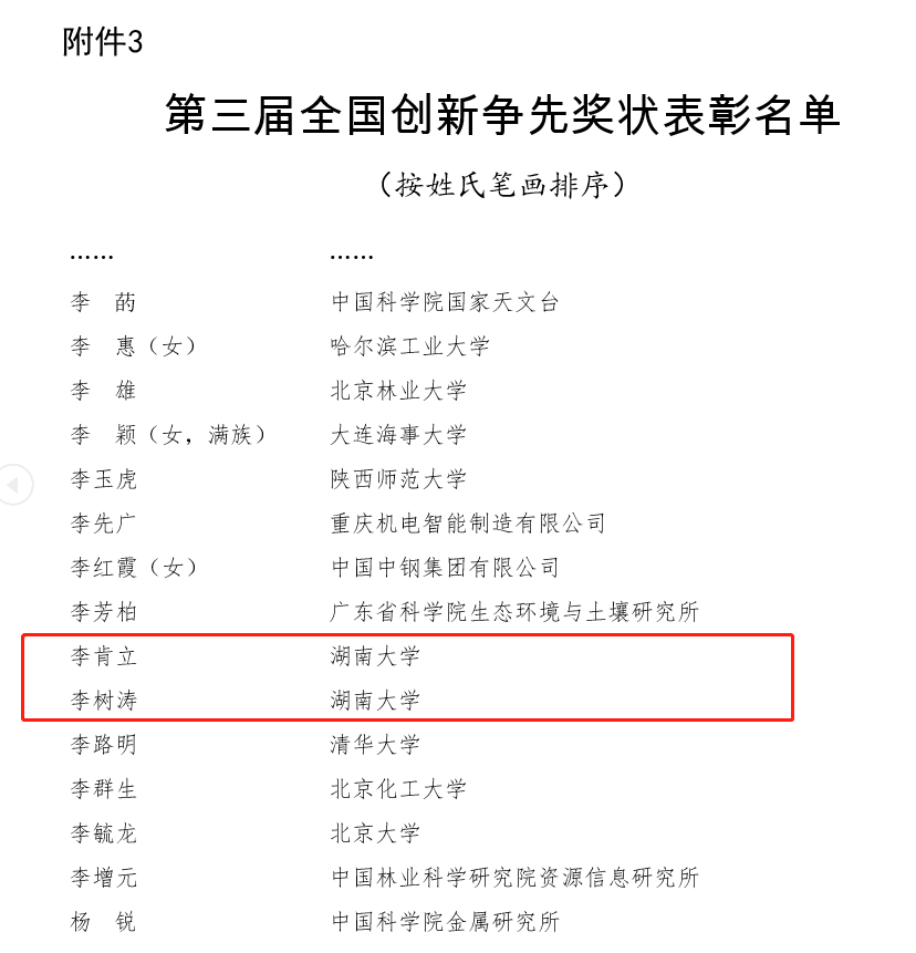 罗安院士荣获第三届全国创新争先奖章(湖南省唯一),李树涛教授荣获第三届全国创新争先奖状。