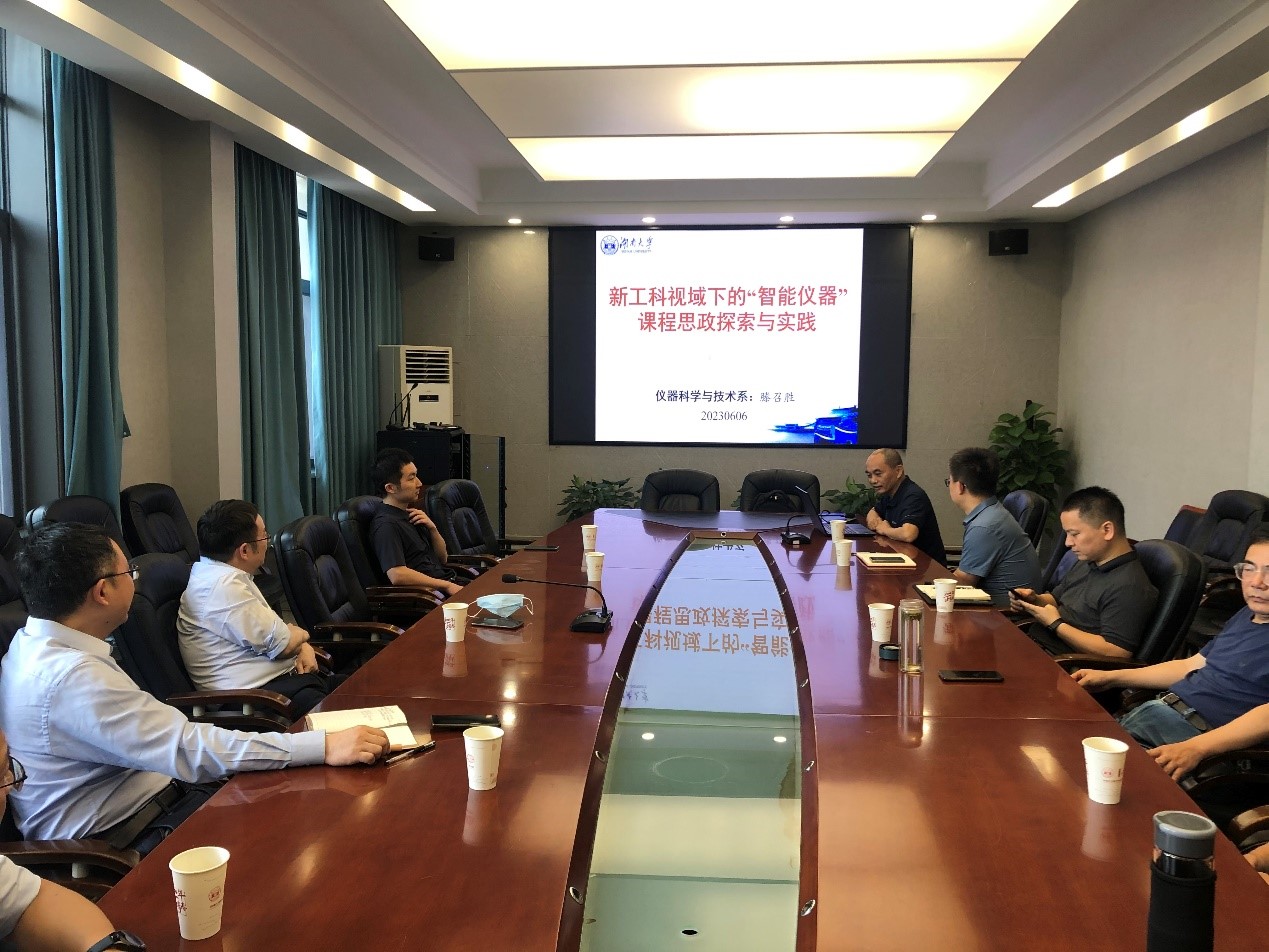 会上,仪器系党支部就课程思政研究中心建设、课程思政教学团队创建、课程思政教学开展经验总结、课程思政示范课程建设、课程思政教学督导情况开展以及党建引领下课程思政建设与实施思路进行专题汇报。