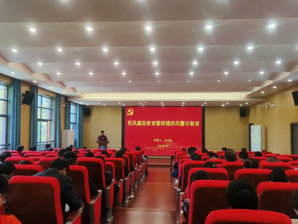 在院324报告厅召开全体教职工大会,院领导班子成员、全体教职工出席此次会议。院党委书记张小刚带领全体教职工学习校第十次党代会精神,院党委副书记、纪委书记汪洪亮开展党风廉政以及师德师风警示教育。