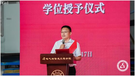 优秀研究毕业生代表张夏伊维回顾了九年湖大时光织就的温柔岁月,在“本科生——辅导员——研究生”的接力棒传递中她实现了育人者终被育的生动回环。在校长寄语、校友情怀的熏陶下,她以真才实干反哺回馈每一分来自学校、学院的爱意。最后她寄语同窗以岳麓山为精神坐标,做发光发热的电气人。