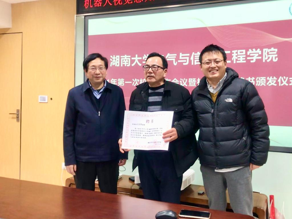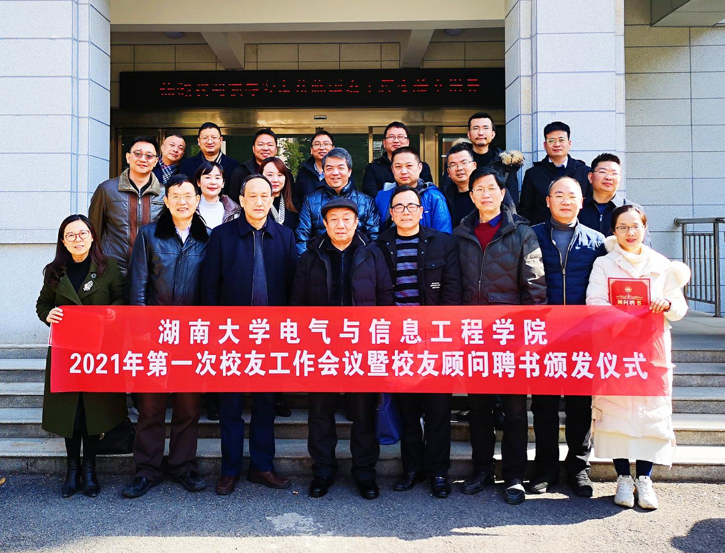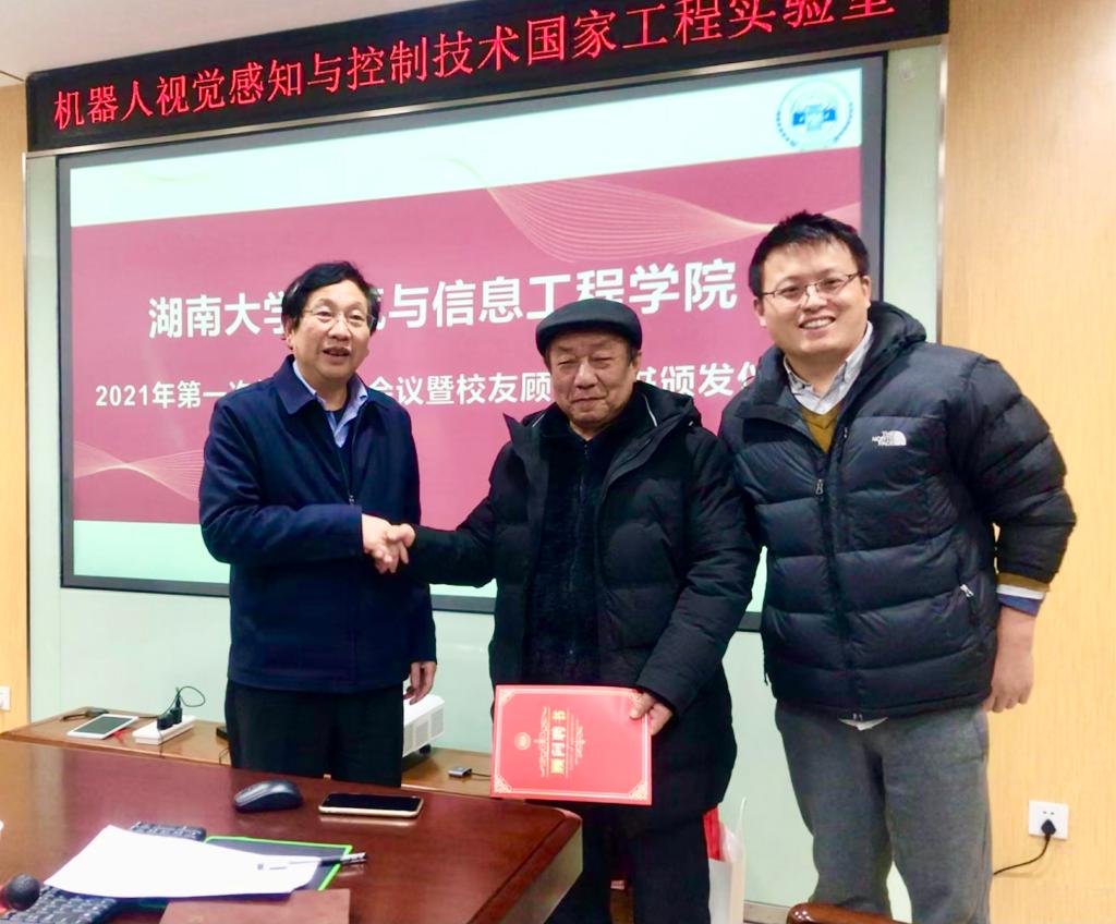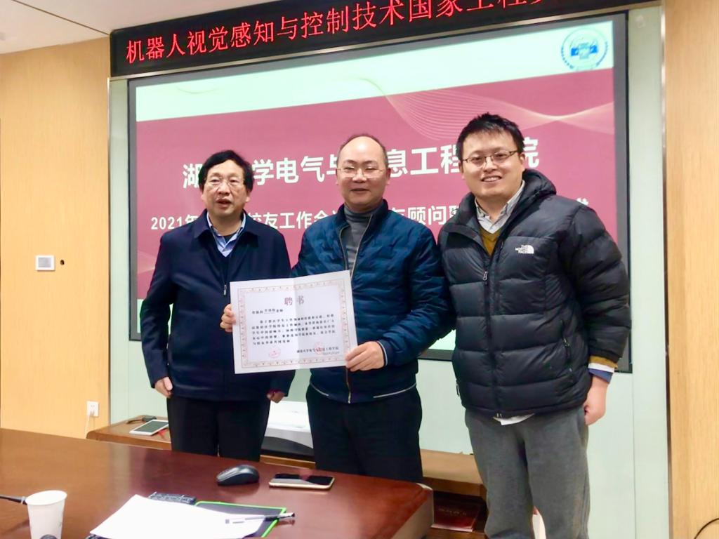 在机器人视觉感知与控制技术国家工程实验室411会议室举行校友工作专题会议暨校友顾问聘书颁发仪式,党委书记黄守道、院长帅智康出席会议,学院办学一百周年校友基础数据收集组全体成员参加会议。