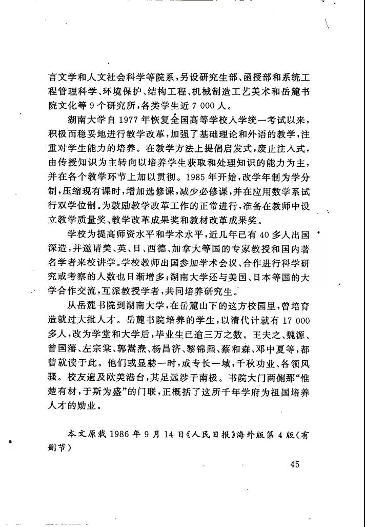 在教学改革方面一直敢为人先,在多年前就提倡启发式教学,注重培养学生获取和处理知识的能力。老校长成文山教授发表于1986年9月14日人民日报(海外版)的文章《千年学府弦歌不绝》中写到:“91官网