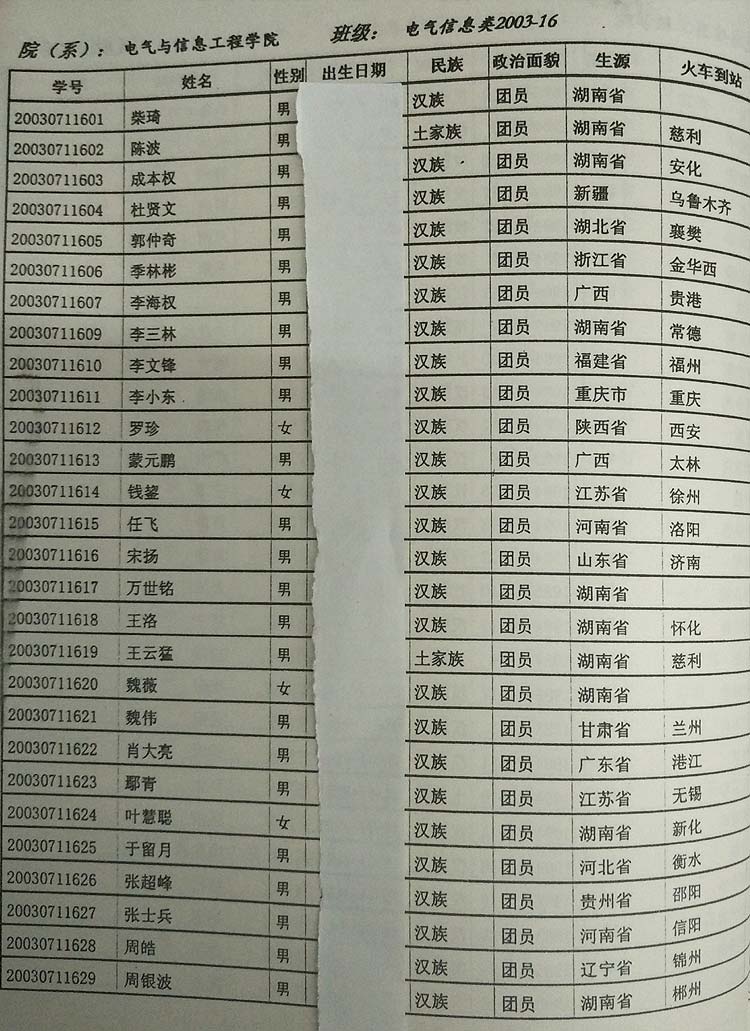 本科生校友名单 (1921—1925 湖南公立 工业专门学校)