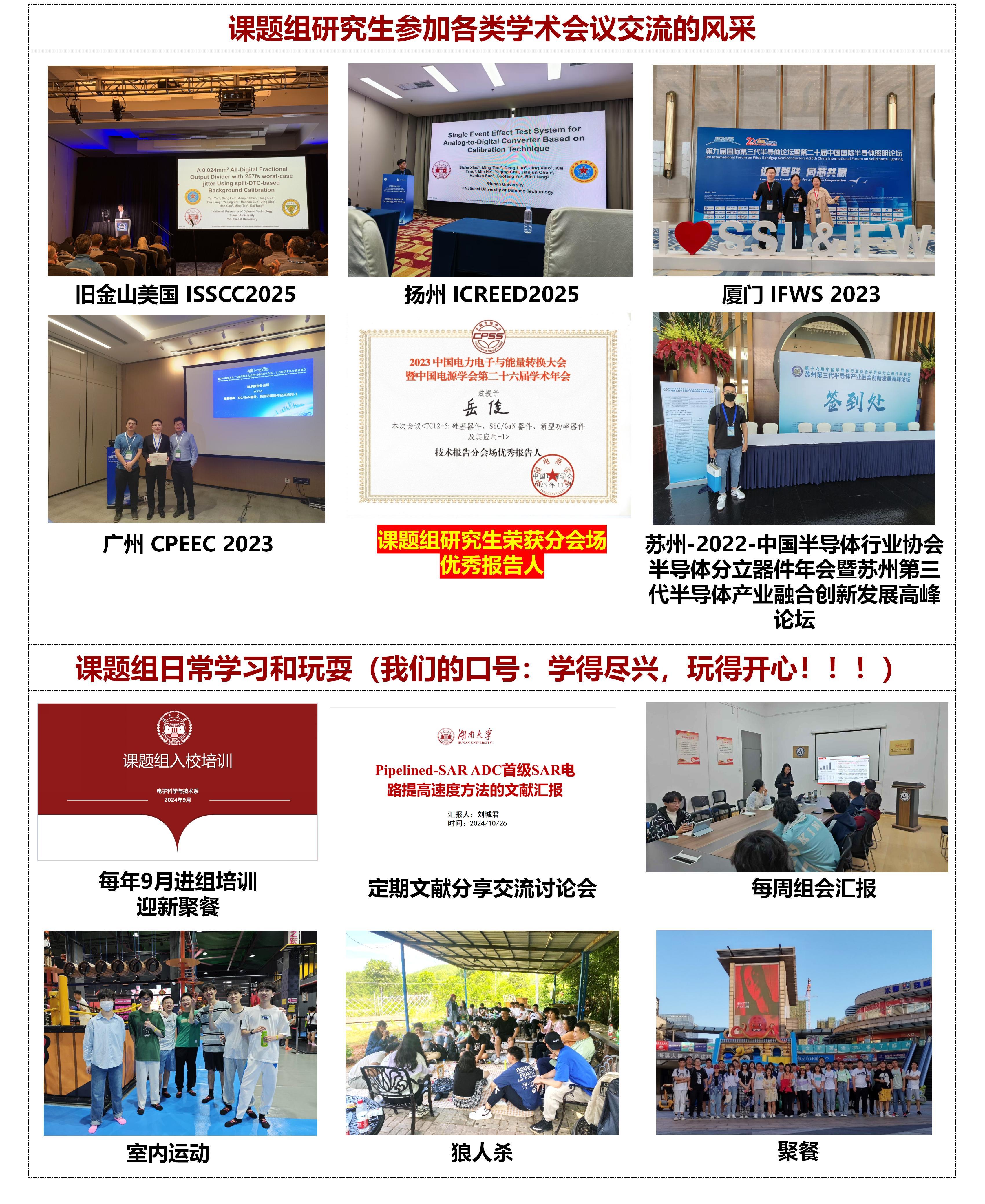 目前主持在研经费充裕,与国防科技大学、工业和信息化部电子第五研究所、北京大学、清华大学、中科院纳米所、华为、国家电网等高校、研究所、企事业单位有着良好的合作研究关系。组内毕业研究生支持继续读博深造,或者推荐至企事业单位工作,欢迎具有电子、电气、物理、计算机、数学等学科背景的学生加入。