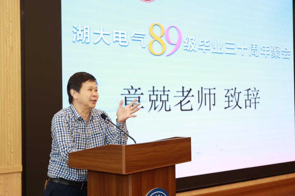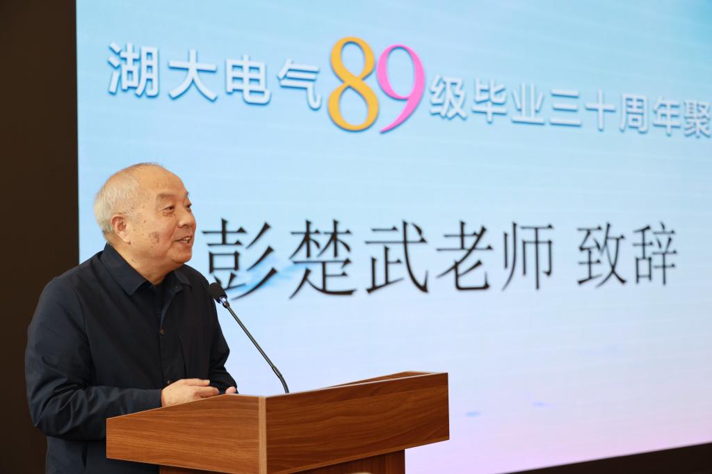 会上,校友会秘书长李劲松老师发表了热情洋溢的致辞并介绍了学校发展情况。学院党委书记张小刚教授对校友们重回母校表示热烈欢迎,对师生见面会的召开表示祝贺,并介绍了学校的发展历程、发展态势和电气学院的成长与成果。章兢教授发言时向同学们讲解了“院徽的组成及历史、意义”。彭楚武教授用一段京剧演唱表达了自己的心情。